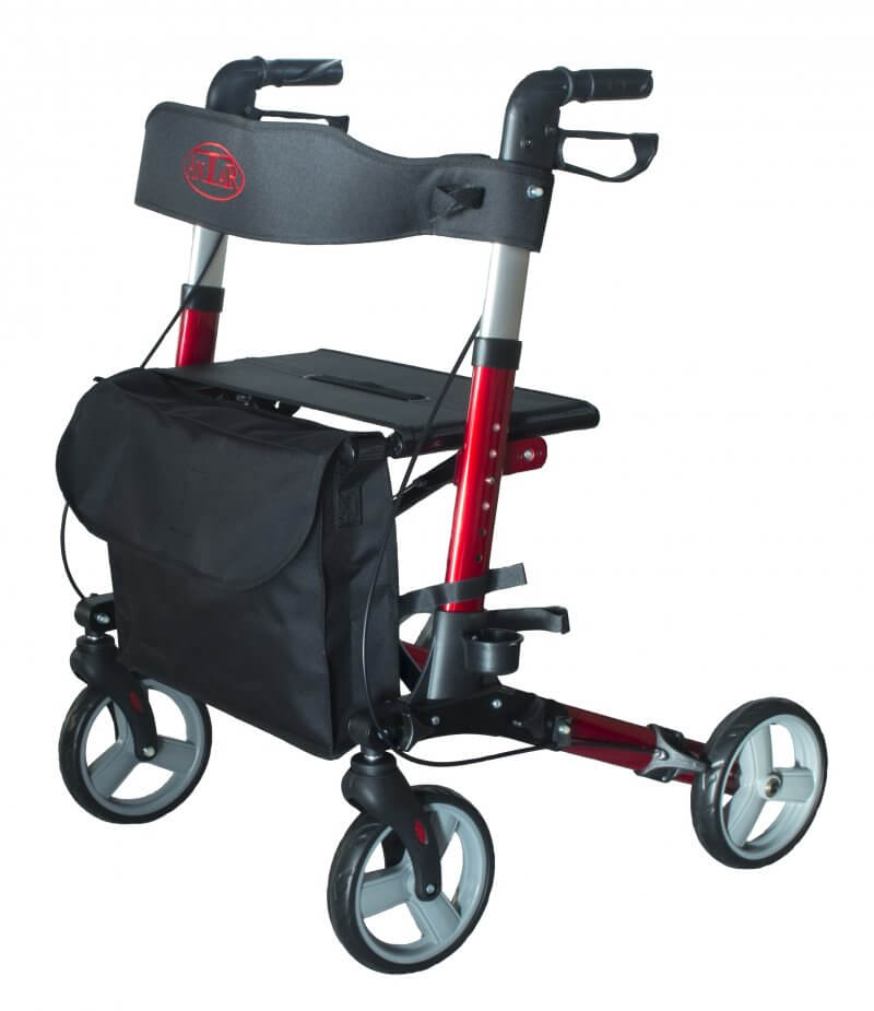 Chodzik czterokołowy, aluminiowy, składany, z kołami o średnicy 8” (przednie) i 7” (tylne).