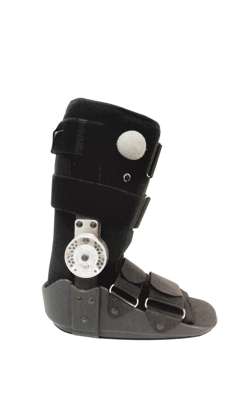 Orteza sztywna z tworzywa sztucznego na goleń i stopę (krótka) Przeznaczona do leczenia pęknięć kości w okolicy stawu skokowego, pęknięć kości stopy, uszkodzeń tkanki miękkiej, ścięgna Achillesa, skręceń stawu skokowego. Poduszki pneumatyczne zapewniają idealne dopasowanie do kształtu stopy i podudzia, komfort, a także doskonałe unieruchomienie. Regulacja kąta pochylenia pozwala na optymalne ustawienie stopy we właściwym położeniu.