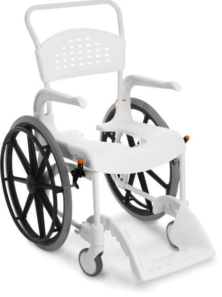 ETAC Clean wózek inwalidzki z funkcją toalety z kołami tylnymi 24”, który można stosować również pod prysznicem lub jako krzesło