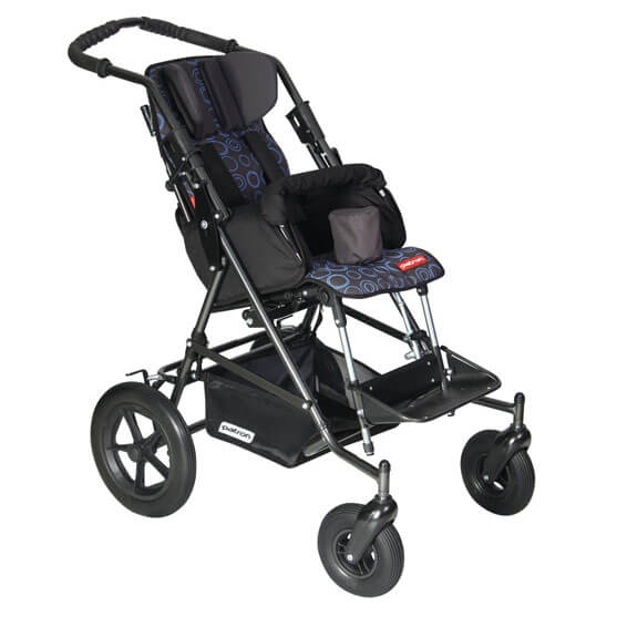 Standardowe wyposażenie wózka to pasy czteropunktowe, barierka przednia, regulowana na wysokość rączka oraz klin. Wózek posiada szeroką gamę wyposażenia dodatkowego. Produkowany jest w czterech rozmiarach: mini, standard, maxi, super maxi. Wózek posiada koła przednie skrętne w standardzie. Tom stanowi fantastyczną opcje dla osób poszukujących wielofunkcyjnego wózka dla swoich dzieci . Posiada wszystkie niezbędne funkcje, regulacje i akcesoria.