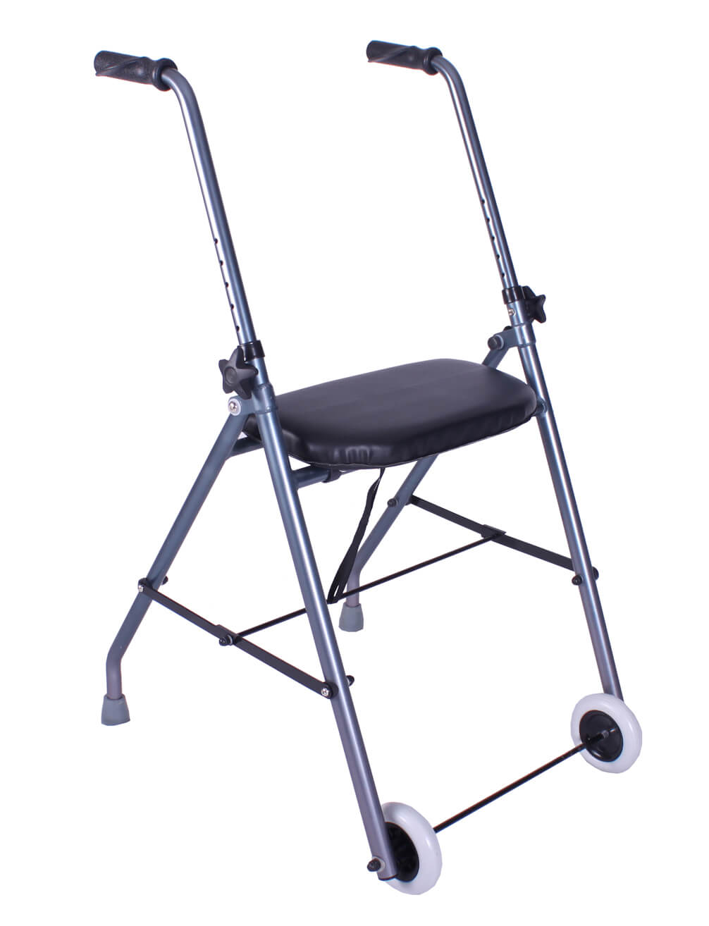 Podpórka aluminiowa przeznaczona dla osób ze schorzeniem narządu ruchu. Wyposażona w komfortowe siedzisko, stopki antypoślizgowe oraz regulację wysokości rączek.