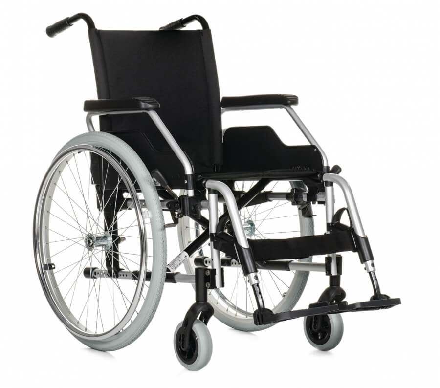 Wygodny i wytrzymały ręczny wózek inwalidzki. Wózek jest osadzony na podwójnej krzyżakowej ramie, jest to więc bardzo stabilny wózek inwalidzki. Komfort korzystania z wózka zapewniają również wygodne, uchylne podnóżki oraz skośny boczek.Możliwość regulacji kąta siedziska i opcja dostosowania środka ciężkości – wszystko to daje możliwość dostosowania parametrów wózka do indywidualnych potrzeb użytkownika. Wygodna tapicerka tekstylna podnosi komfort korzystania z ręcznego wózka inwalidzkiego.