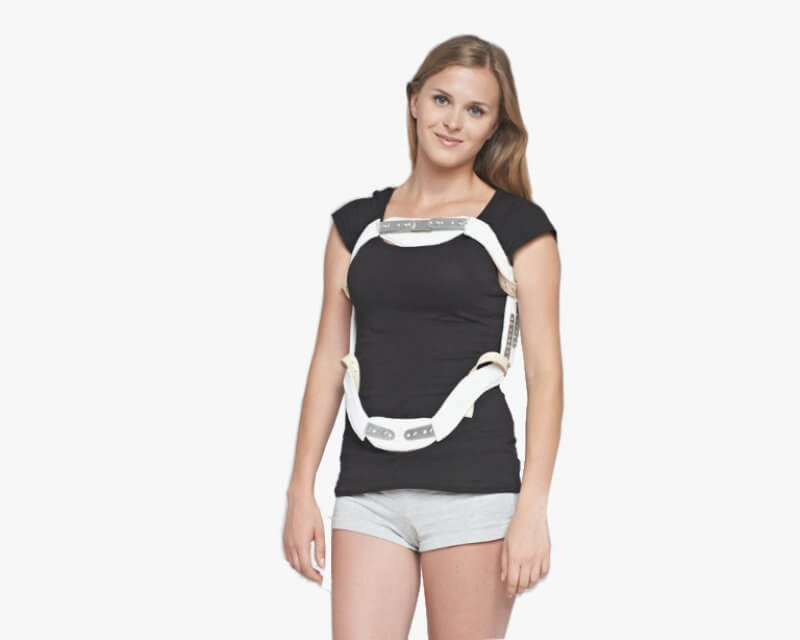 Przy wysokich złamaniach kręgosłupa piersiowego, gorset wykonuje się z podparciem pod żuchwę i potylicę. Wówczas montowana jest zamiennie pelota mostkowa z regulowanym podparciem pod żuchwę, oraz rama tylna z regulowanym podparciem pod potylicę.