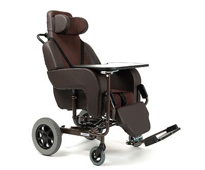 CORAILLE to wygodny wózek który stabilizuje oraz plecy na podwoziu transportowym. W standardzie posiada komfortową tapicerkę która to wykonana jest z materiału wybranego przez pacjenta tak aby wózek był jak najbardziej przyjazny. Podnóżki z regulacją kąta nachylenia do poziomu z bocznymi zabezpieczeniami, zagłówek, pasy bezpieczeństwa. Atutem naszego wózka jest możliwość regulacji kąta nachylenia oparcia oraz siedziska. Wózek posiada płynną regulację za pomocą siłowników hydraulicznych. Tego typu wózki pielęgnacyjne przeznaczone są dla osób leżących, bardzo wiotkich, których kondycja nie pozwala na korzystanie z klasycznych wózków z odchylanym oparciem, które nie gwarantują odpowiedniego poziomu bezpieczeństwa. W standardzie wózek posiada pasy czteropunktowe oraz zagłówek. Ma również możliwość ustawiania różnej wysokości siedziska od podłoża oraz do wyboru trzy rodzaje grubości poduszki siedzenia