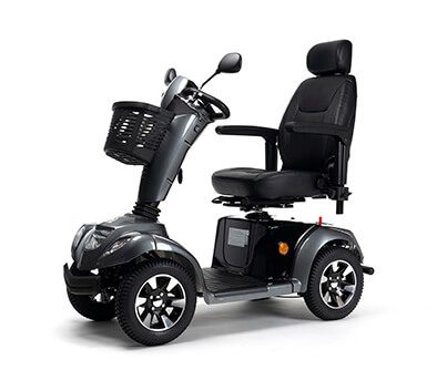 Skuter Elektryczny czterokołowy nowoczesny design na fantastycznych aluminiowych felgach świetnie się prezentuje. Posiada na swoim wyposażeniu panel sterujący LCD, na którym możemy znaleźć takie informacje jak poziom naładowania baterii, godzinę, prędkość, temperatura powietrza. Obracany fotel ułatwia wsiadanie i zsiadanie z skutera. Fotel można ustawiać na rożnej wysokości i regulować kąt oparcia. Amortyzowane wszystkie cztery koła gwarantują bardzo duży komfort jazdy nawet na nierównościach. Maksymalna prędkość 15 km/h.