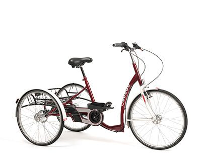Rehabilitacyjny rowerek trójkołowy dla dorosłych. Doskonałe narzędzie terapeutyczne i rehabilitacyjne dla osób dorosłych, starszych oraz chcących pozostać w ciągłym aktywnym życiu. Ruch stymulująco wpływa na utrzymanie układu kostno mięśniowego w dobrej kondycji. Poprawia krążenie oraz utrzymuje mięsnie w świetnej kondycji. Rowery motywują do działania osoby starsze, którym się wydaje, że przejażdżka rowerem już nie jest dla nich. Model LAGOON jest dla osoby o długości nogi 75cm-105cm. Rower w standardzie nie jest wyposażony w mechanizm dyferencjału. Podczas jazdy na nie utwardzonej nawierzchni może być odczuwalne ściąganie roweru na jedną stronę. Jest to związane z tym, że łańcuch przenosi napęd tylko na jedno koło. Aby uniknąć tego zjawiska rekomendujemy zawsze zamówienie opcji dyferencjału (mechanizmu różnicowego), który przekazuje jednakowy moment obrotowy na oba koła niezależnie od napotykanego oporu. Co niweluje skutecznie efekt ściągania na jedną stronę niezależnie od terenu w jakim porusza się rower.